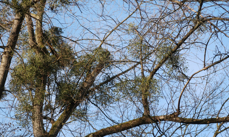 Mit ihrer kugelförmigen Wuchsform, die bis zu 1m Durchmesser erreichen kann, erinnert die Mistel oft an ein Vogelnest. Sie wächst auf Bäumen und entzieht ihrer Wirtspflanze über ihre Wurzeln Wasser und darin gelöste Mineralien. Da die so gewonnenen Stoffe durch Photosynthese in der Mistel noch weiterverarbeitet werden, wird die Mistel als «Halbparasit» bezeichnet. Der Nektar und die Beeren der Pflanzen sind wichtige Nahrungsquellen für Insekten und Vögel.