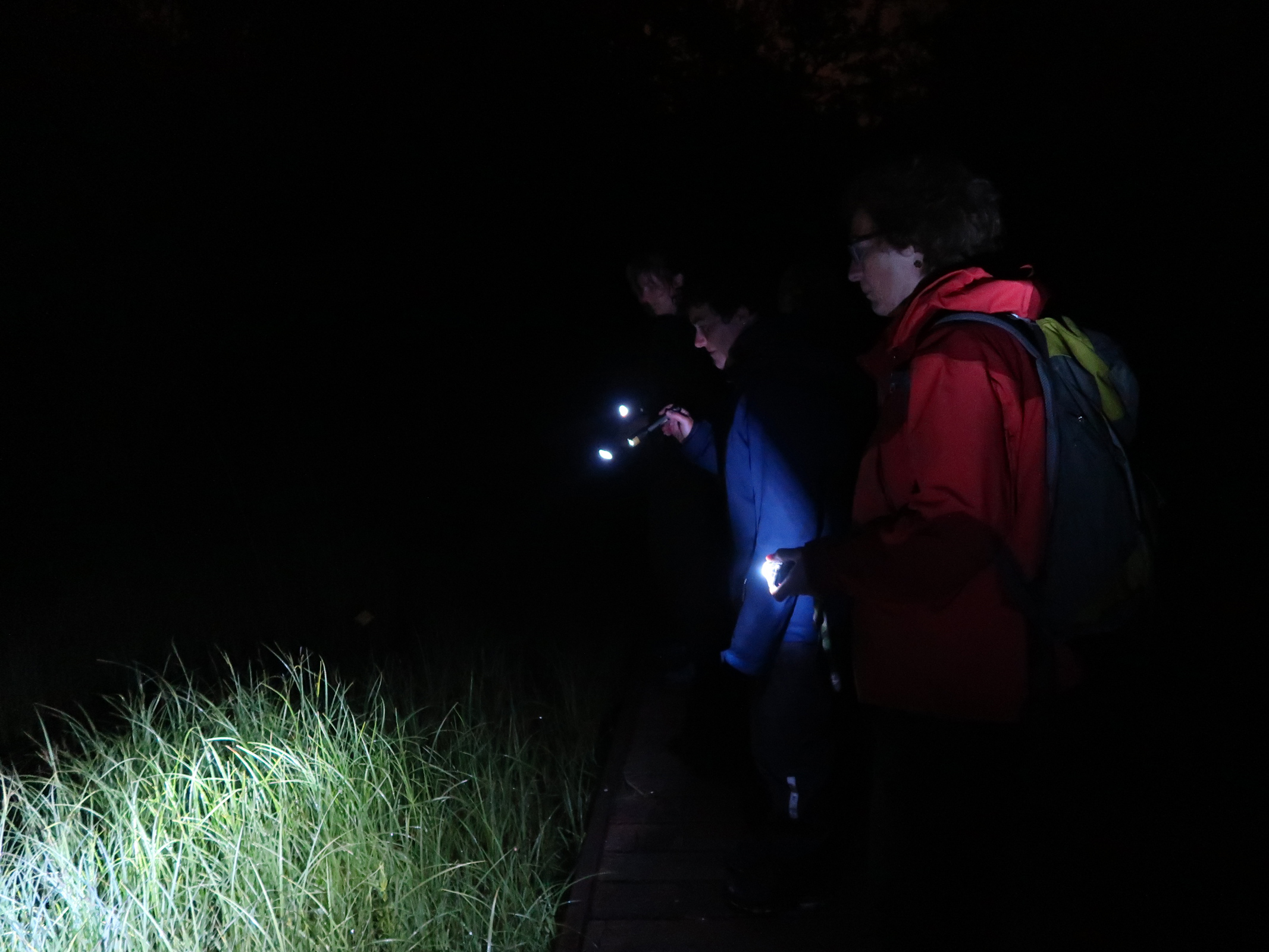 Wenn es dann langsam dunkel wird und die Laubfrösche anfangen zu quaken, schleichen wir uns zurück an die Tümpel und erkunden im Schein der Taschenlampe das nächtliche Treiben auf dem Erlebnispfad.