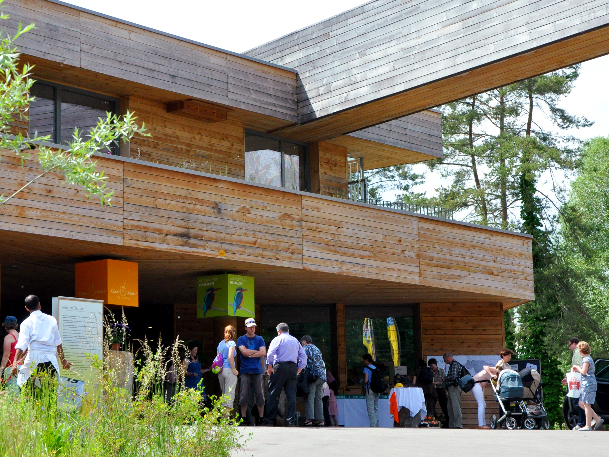 Erkunden Sie am Tag der offenen Tür im Naturzentrum nach Lust und Laune unsere Dauerausstellung zum Thema Flussauen, unsere Sonderausstellung «Wow, ein Eisvogel!» und den Erlebnispfad. Bei unserer Station «Ökosystemleistungen» auf der Terrasse erfahren Sie, warum die Auen für uns Menschen wichtig sind. Unsere kleinen Gäste finden auf dem Lernspielplatz ein Modell eines Biberbaus und können einen renaturierten Fluss bauen. Kommen Sie mit auf eine der kostenlosen Führungen und erfahren Sie Vieles über den Lebensraum Flussaue. Das Team stellt Ihnen weitere Natur- und Artenschutzprojekte der Stiftung PanEco vor.